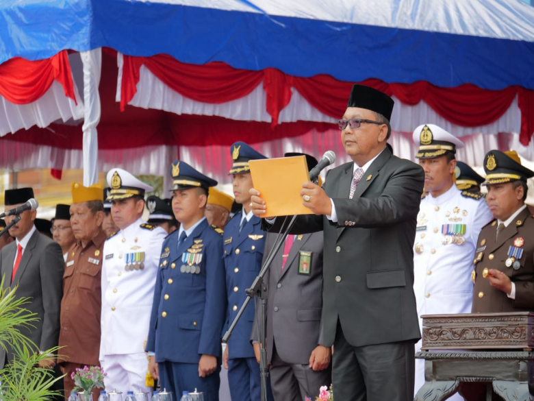 IMG-20190825-WA0013 Admin25 Agustus 201926 Agustus 2019 Pembacaan teks Proklamasi oleh Ketua DPRD Bintan Nesar Ahmad (F-Kominfo Bintan)