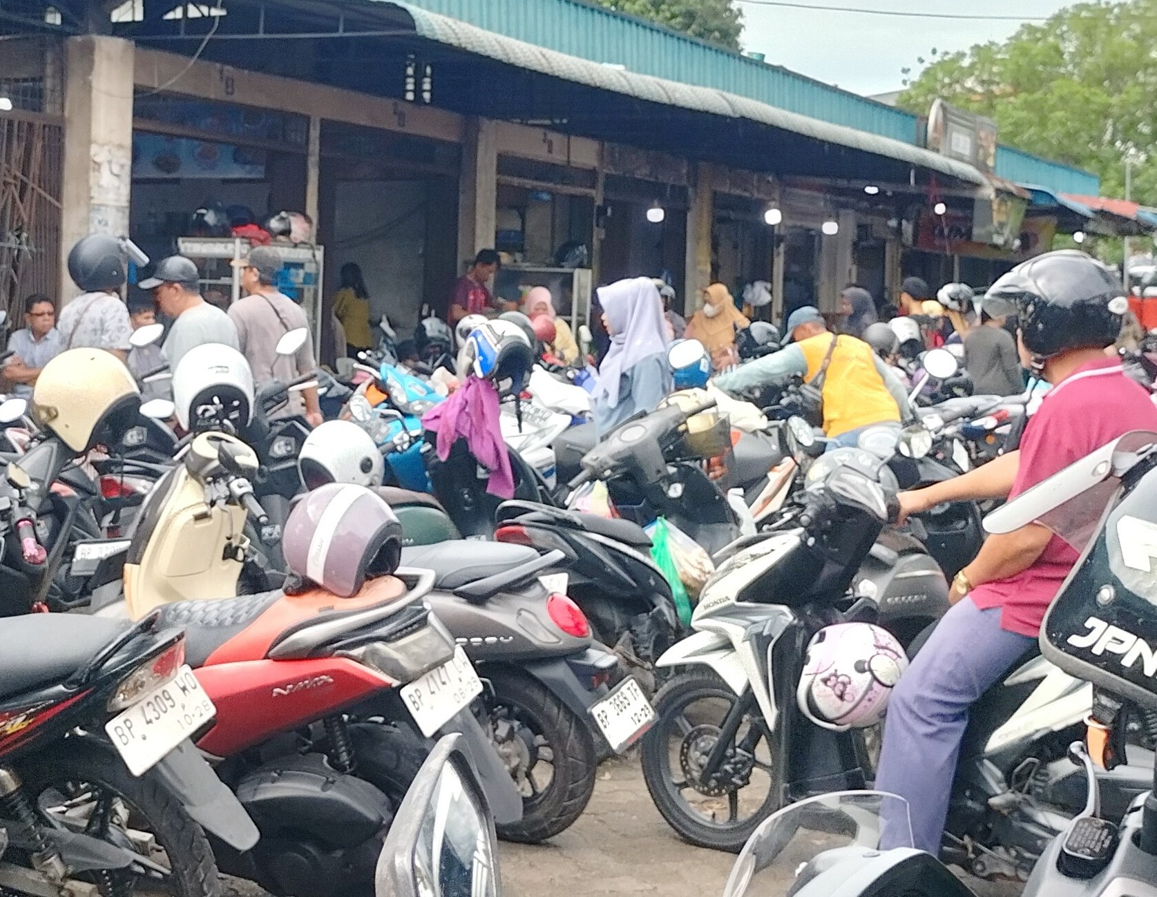Areal parkir Pasar Bintan Center dipadati pengunjung