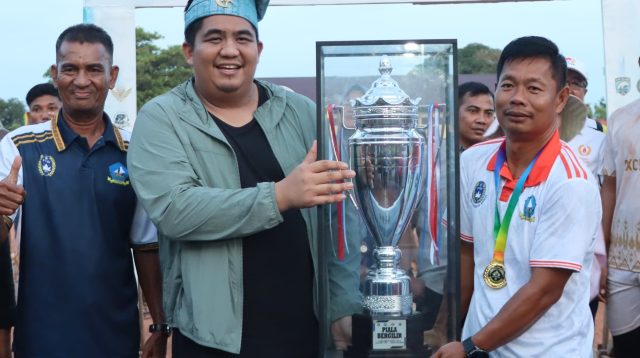 Bupati Bintan Roby Kurniawan menyerahkan piala bergilirTurnamen Sepak Bola Kelong Cup VI kepada juara pertama Baca selengkapnya