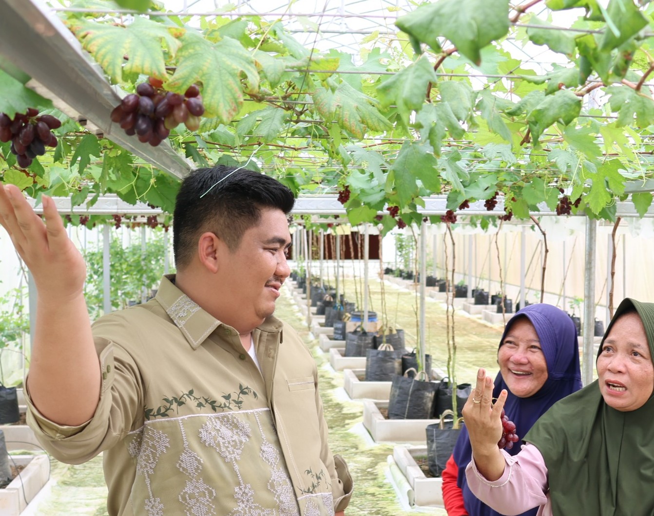 Bupati Roby memberikan apresiasi atas kreatifitas seluruh anggota yang mampu melahirkan pelung dengan memanfaatkan perkembangan zaman. Screenhouse buah anggur di atas lahan seluas 8 x 40 m ini memiliki 8 varian anggur siap panen, dimana hasil panennya langsung dibeli oleh para pengunjung.