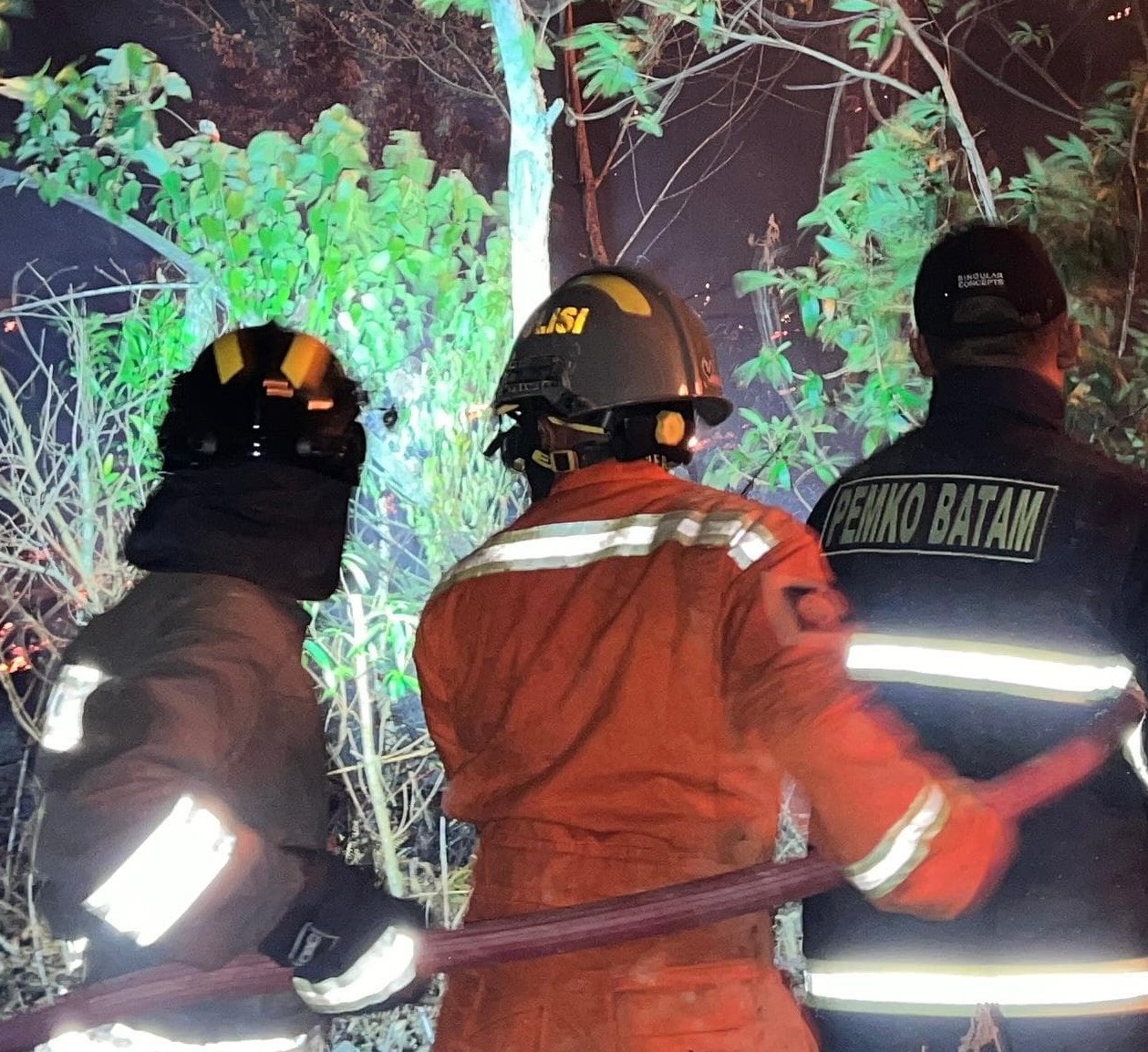 “Sekira pukul 23.30 WIB, personel Ditsamapta Polda Kepri yang dipimpin Padal Iptu Sudirman dan Ipda Firmansah tiba di lokasi bersama satu unit Rantis Karhutla, satu unit Rantis AWC, dan satu unit Rantis SAR. Setelah berkoordinasi dengan petugas Pemadam Kebakaran Kota Batam, kendaraan dan personel ditempatkan di area belakang perumahan yang berbatasan langsung dengan titik kebakaran hutan,” jelas Kabidhumas Polda Kepri.
