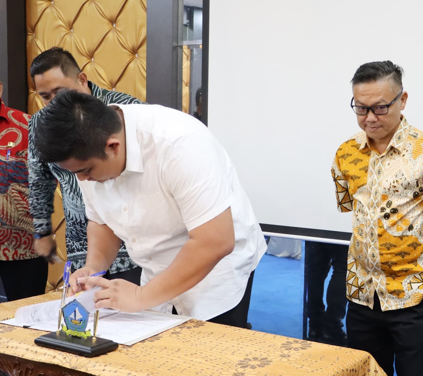 Bupati Bintan Roby Kurniawan menandatangani berita acara setah terima 4 PSU bersama para Pengembang, Kamis (6/11) di Ruang Rapat II Bandar Seri Bentan.
