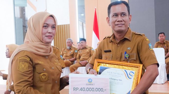 Wakil Bupati Bintan Deby Maryanti menyerahkan piagam penghargaan dan hadiah kepada Kades di Aula Bandar Baca selengkapnya